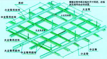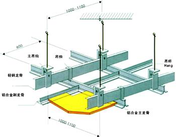 鋁合金系列 鋁合金龍骨、石膏板吊頂安裝示意圖 |